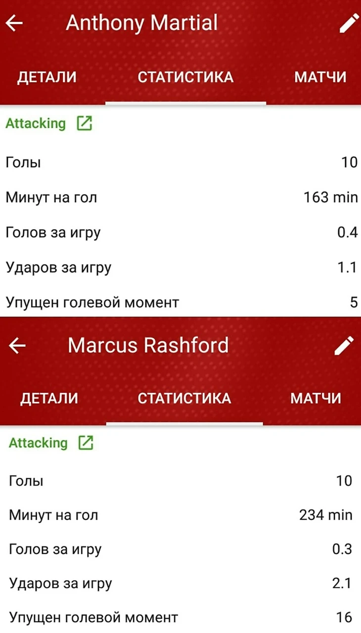 • В прошедшем сезоне Марсьяль выступая на левом фланге атаки отличился 5 раз в 7-и матчах против команд из топ-6, в то время, как Рэшфорд лишь один раз сумел отличиться в 11-и матчах.
