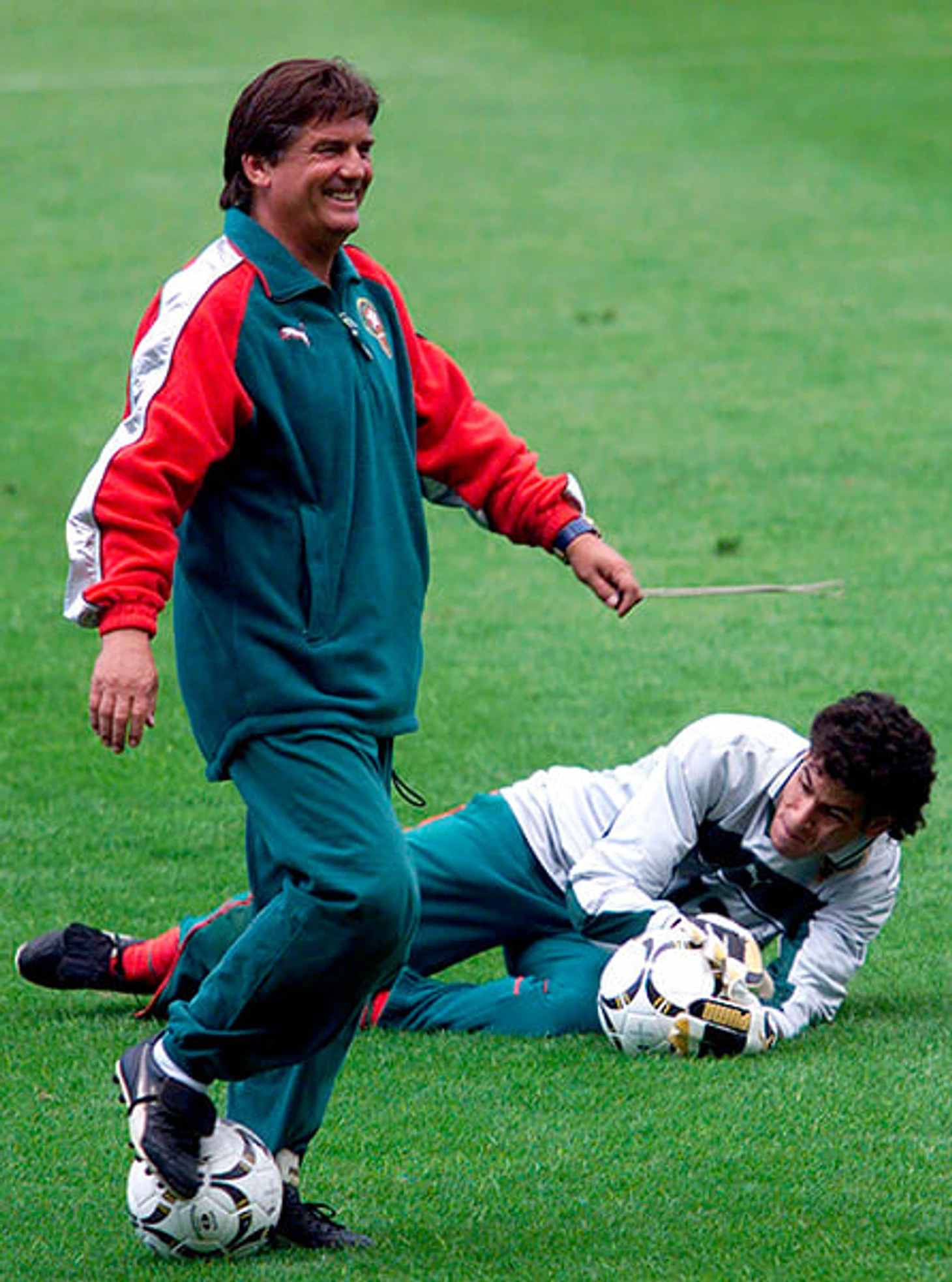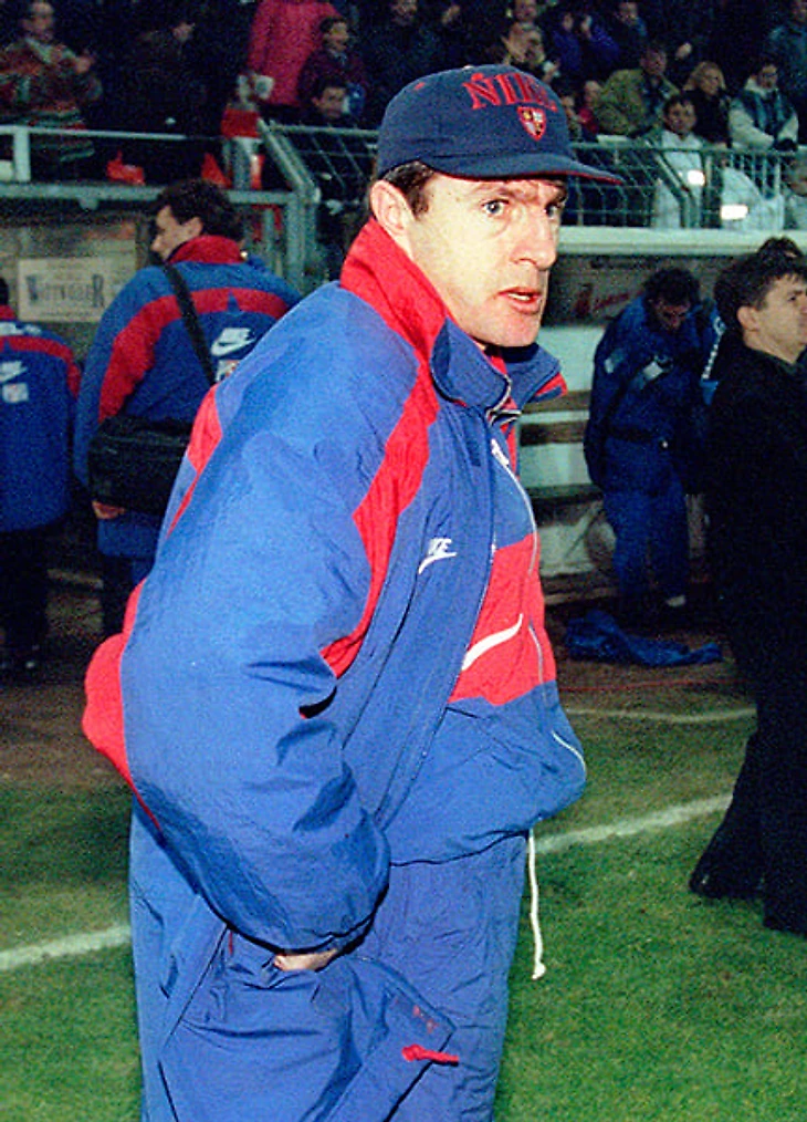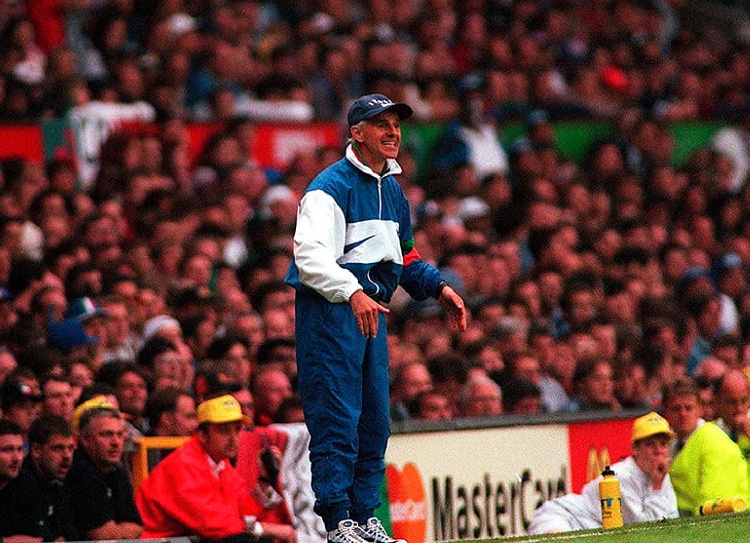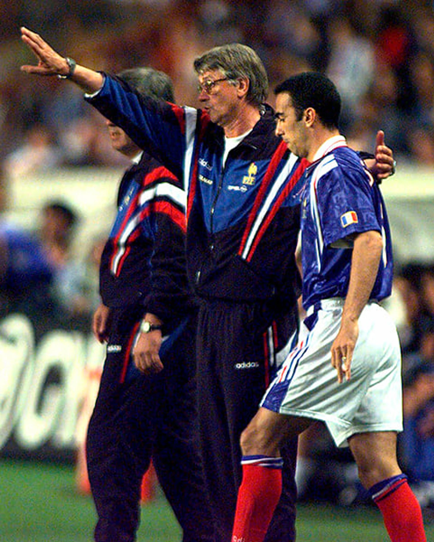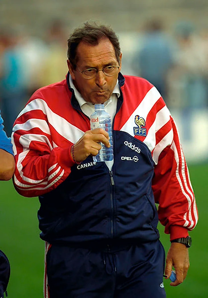 Эме Жаке, главный тренер сборной Франции-1998, в верхней части адидасовского спортивного костюма.