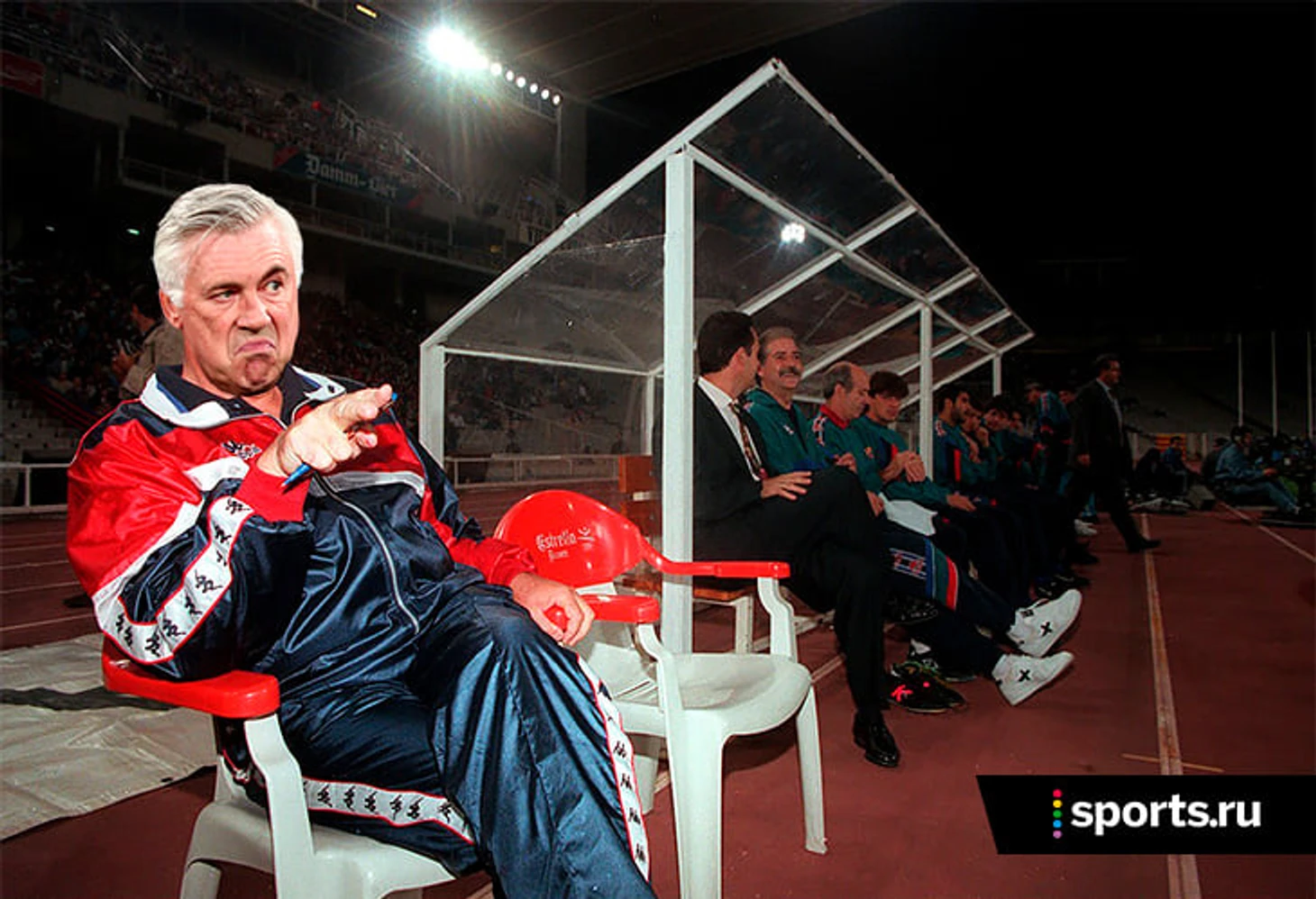 Пестрые спортивные костюмы носили не только мы с вами, но и футбольные тренеры 90-х. В отличие от современности, когда Маурицио Сарри приходится объясняться, почему он предпочитает спортивные костюмы деловым, в 90-е таких вопросов не возникало.