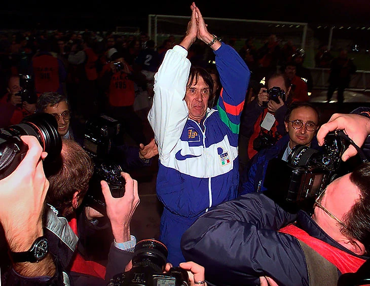 Чезаре Мальдини кайфует: его сборная только что вышибла Россию в стыковом матче ЧМ-1998.