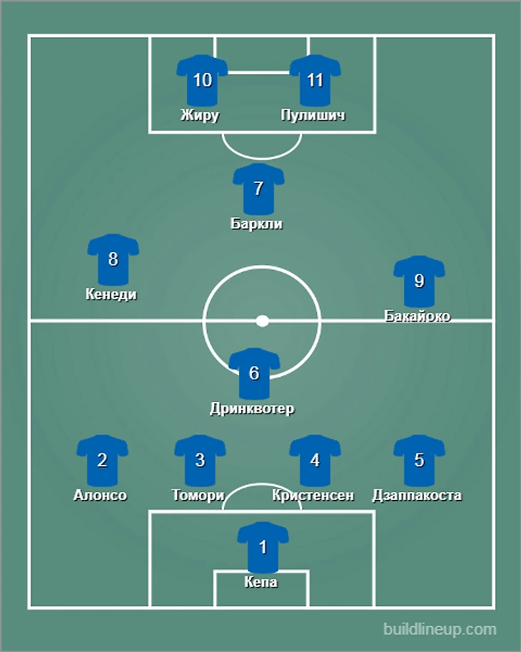В этой схеме мы почти всё видели, кроме Пулишича в роли нападающего. Если Лэмпард не будет перекидывать игроков из одной команды в другую, то на это будет достаточно интересно посмотреть. В команде нет лучше нападающего для игры в паре чем Жиру, а Баркли уже 3 игры подряд раздаёт великолепные передачи. Если и пытаться пробовать Кристиана в роли нападающего, то лучшего напарника и матча не будет.