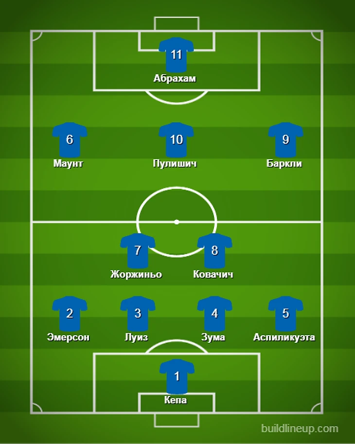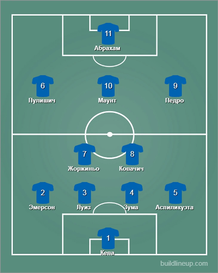 Будем исходить из того, что Лэмпард действительно поменяет схемы и в этот раз, а значит Команда А будет играть по схеме 4-2-3-1. С Пулишичем в составе это будет выглядеть следующим образом: