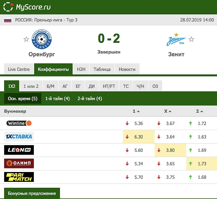 То есть из двух команд, более менее равных по уровню сейчас (я бы даже сказал, что екатеринбуржцы по результатам показывают себя солиднее), одну из которых неистово трясет уже который месяц, с некими внутренними проблемами и у которой вышел в старте Рамиль Шейдаев, оценивают как однозначного фаворита в матче с командой, в предыдущих матчах показавшей характер и слаженную игру. Для сравнения, ровно такие же коэффициенты стояли в "договорном" по мнению некоторых юзеров спортца матче «Оренбур» - «Зенит»: