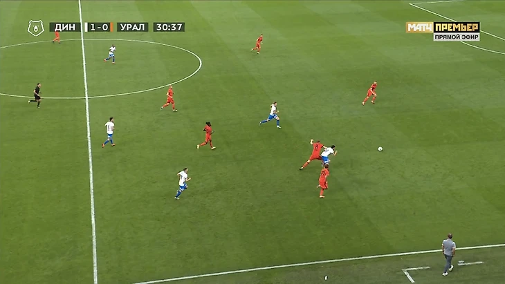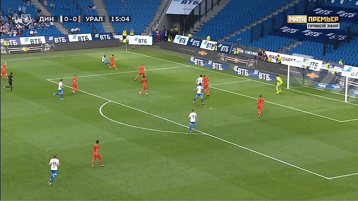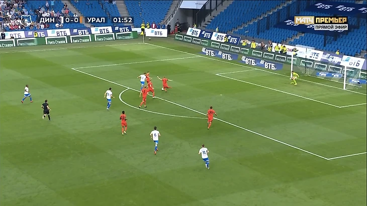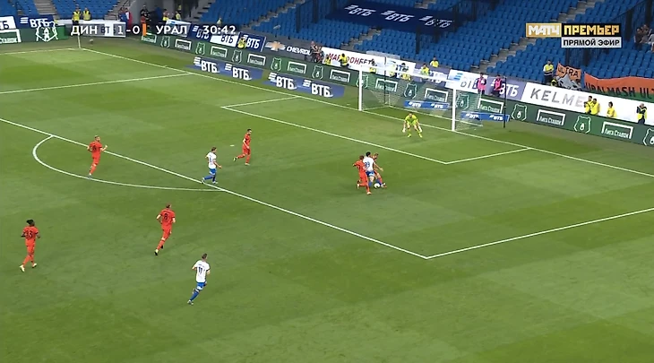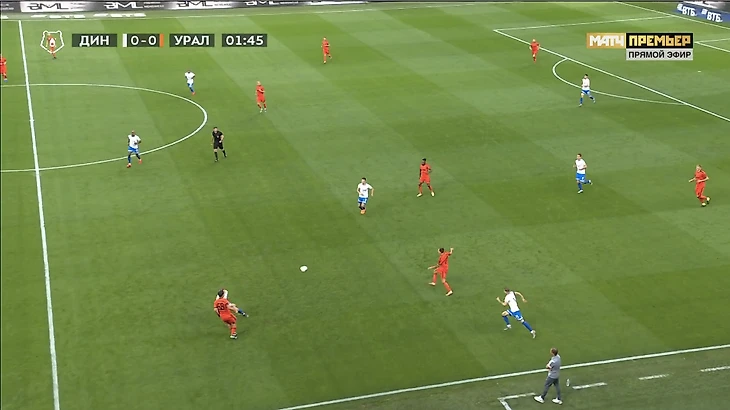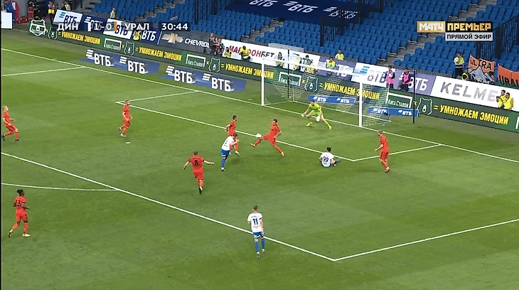 Всю последующую минуту продолжается атака «Динамо», защитники «Урала» хаотично выбрасываются и создают зону для Панченко, от гола спасает только высочайший исполнительский класс форварда.