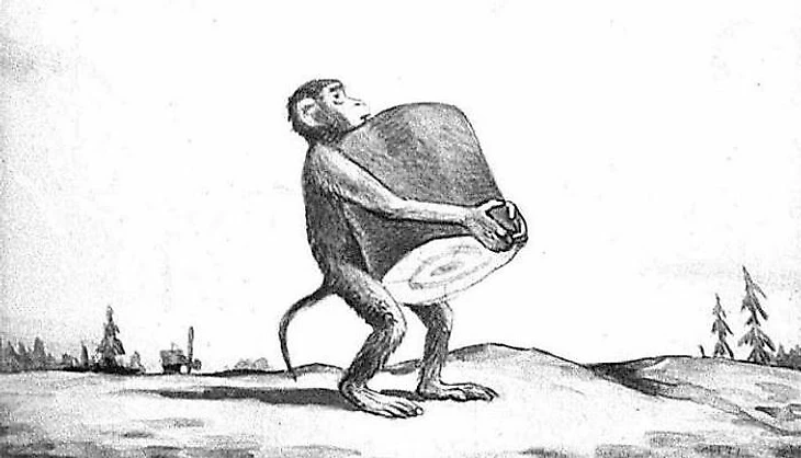 Согласно сюжету басни И.А Крылова, обезьяна позавидовала крестьянину, который тяжело трудится и получает за это от прохожих благодарность и похвалу. Она также решила снискать народное уважение и почет. Обезьяна не предприняла ничего лучшего, как имитировать процесс тяжелой работы, повторяя движения мужика она начала перекладывать чурбан с места на место. Это занятие утомило ее, однако , ни от одного человека не услышала одобрения и похвалы.