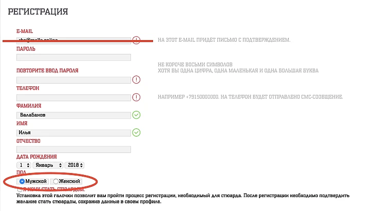 Покупая билеты, я использовал свой уже существующий аккаунт. Поэтому данный этап был пропущен. Вчера вечером я попросил своего помощника измерить скорость загрузки всех страниц (важный для SEO показатель), на что получил ответ: «А я не могу зарегистрироваться». Это очень плохой знак, говорящий, что сайт не коммуницирует с человеком доступным языком.