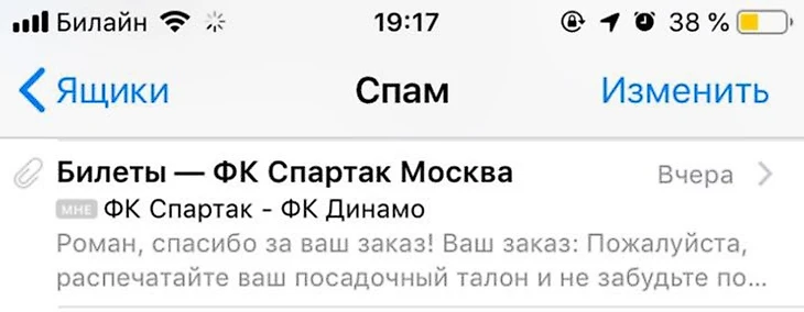 Уже давно заметил, что все письма от «Спартака» на автомате попадают в спам, если у ваш почтовый ящик на Gmail. Эта проблема стара и решается за несколько дней, а в случае «Спартака» – несколько часов работы. Видимо, это никому не интересно.