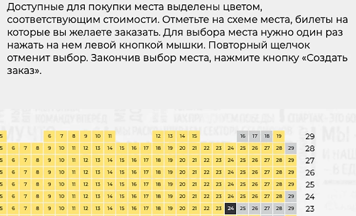 Идем дальше: выбираем места и читаем текст. Начинаем искать по всему сайту кнопку «Создать заказ, а ее-то нет! Нигде!