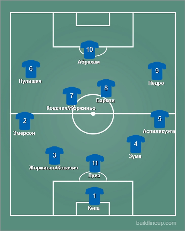 Лэмпард не стал вести в Австрию Бакайоко и Дринквотера, а учитывая, что произошло в матче(об этом дальше), то можно сказать, что будущего в клубе у них нет. Я почти угадал состав. Не попал только в Баркли. Схема была уже классическая для этого Челси 4-2-3-1 с опорной зоной в виде Ковачича и Жоржиньо.