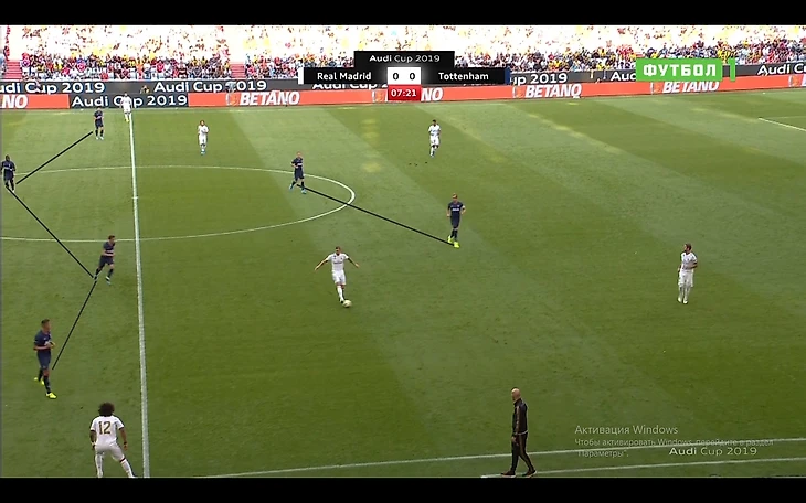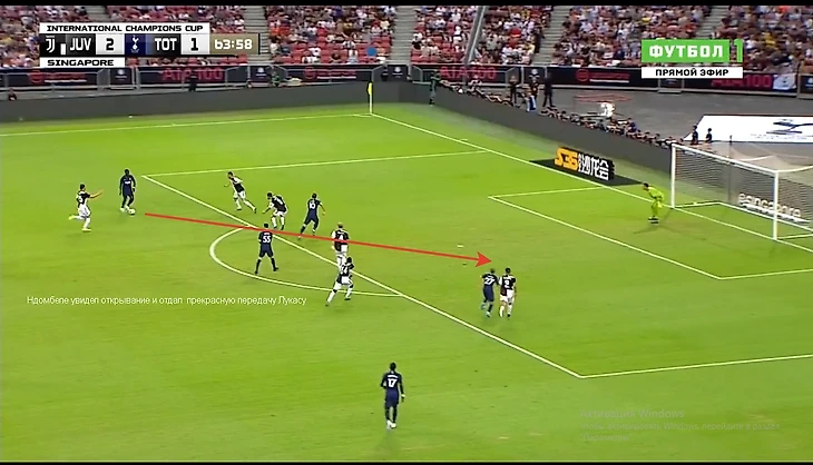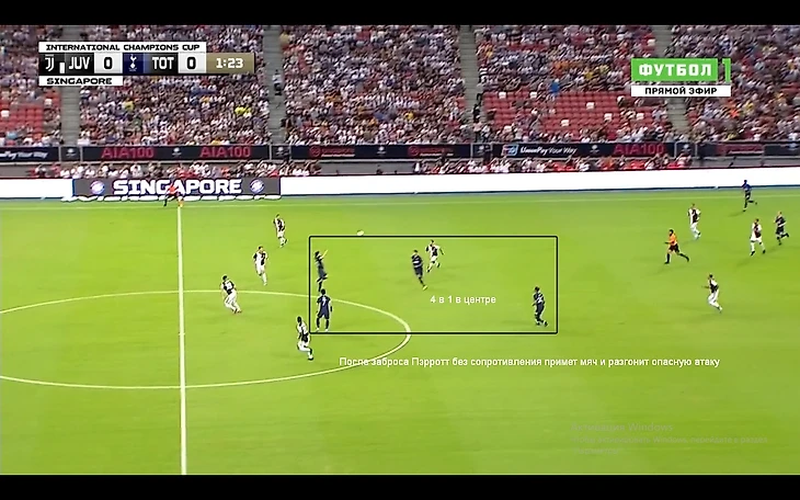 При этом если соперник прессинговал высоко (как Ювентус на картинке), то команда не стеснялась выходить из-под прессинга забросами в центр,где Шпоры создавали численное преимущество.