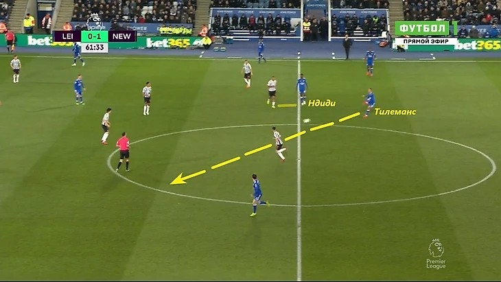 Пример из матча с «Ньюкаслом» — Соломон Рондон играл нападающего в системе 5-4-1 и плотно опекал Ндиди. Бельгиец воспользовался ситуацией и получил мяч от защитников, и после приема у Тилеманса было еще пару секунд для разворота атаки через Чилуэлла.