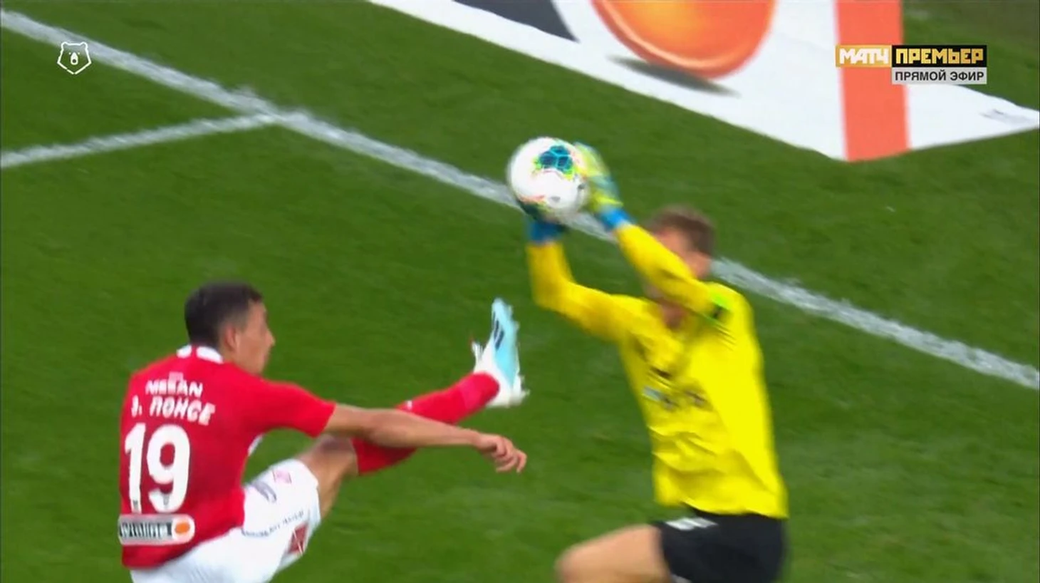 3. «Спартак» пытался цепляться за мяч либо через выносы на Понсе, либо через силовой дриблинг Гулиева, Зобнина, Айртона и Бакаева. В первом тайме спартаковцы 29 раз пошли в дриблинг, гости — 9, хотя именно «Динамо» владело преимуществом. По-настоящему опасный момент «Спартак» создал только со стандарта — Жиго вылетал на мяч после скидки, но немного не дотянулся. А на 35-й минуте красно-белые и вовсе остались в меньшинстве — Понсе после подачи Бакаева влетел прямой ногой в живот Шунину. Обошлось без травм, но спустя минуту Эсекьель шел вдоль боковой линии, натянув футболку на лицо.
