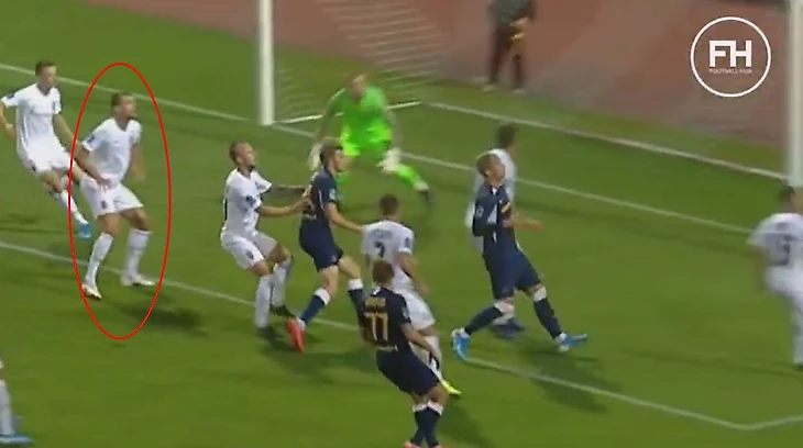 А вот и Виталий Вернидуб (выделен красным). На его форме тоже нет титульного спонсора «Зари», хотя у его партнера сзади – есть.