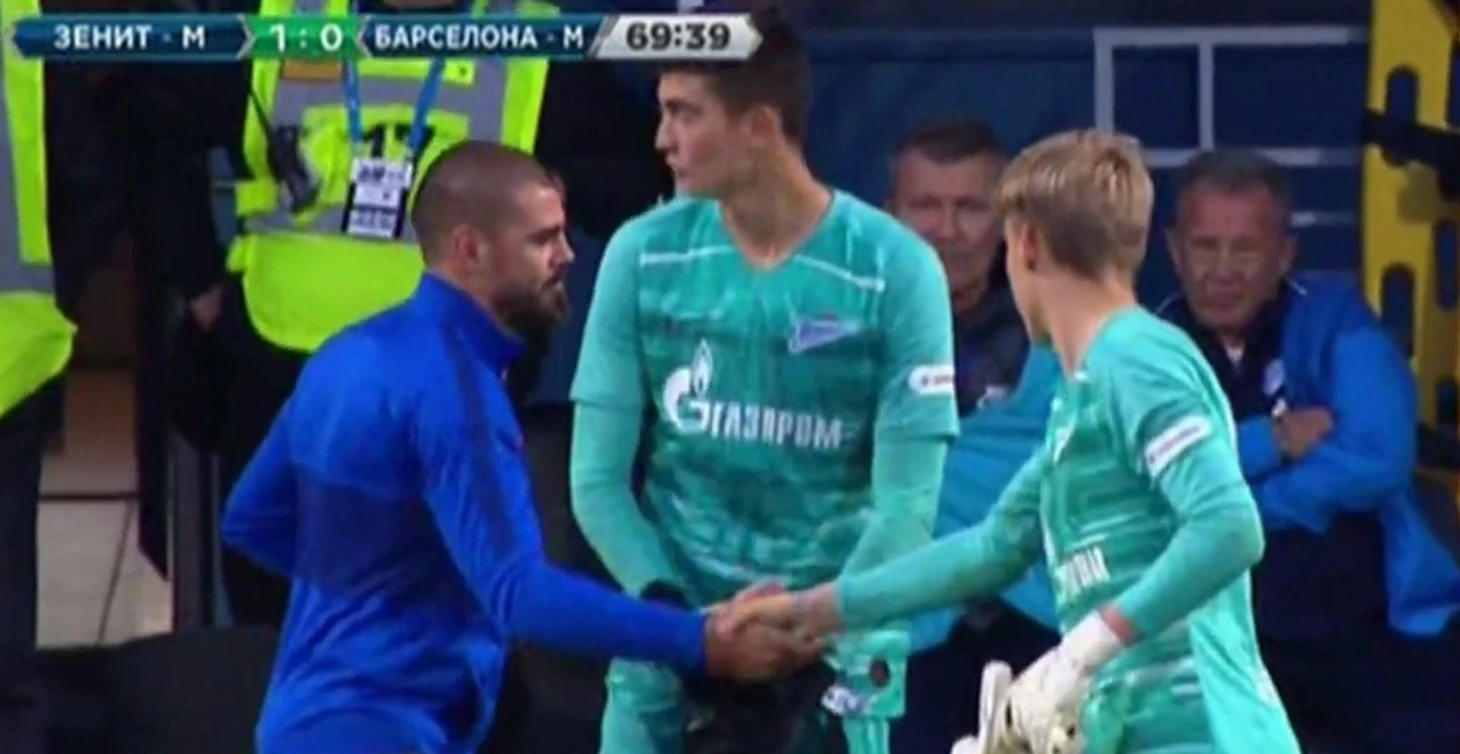 На 70-ой минуте начавший матч в старте 16-летний Даниил Одоевский был заменен, поняв это, Виктор Вальдес - легендарный воспитанник и экс-голкипер «Барселоны», ныне являющийся главным тренером барселонского «Хувениля A» - поспешил поздравить с отличным выступлением юного вратаря системы «Зенита».