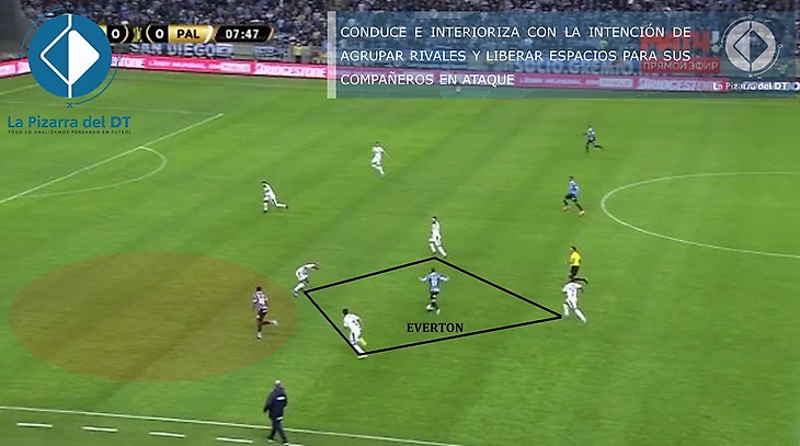 Самое интересное и неочевидное качество, которое вновь демонстрирует рост тактической выучки Себолиньи у Ренато (опять же выучки по бразильским меркам). Эвертон просто потрясающе чувствует игру, вытягивает соперников. То чувство, когда даже без касаний можно делать игру