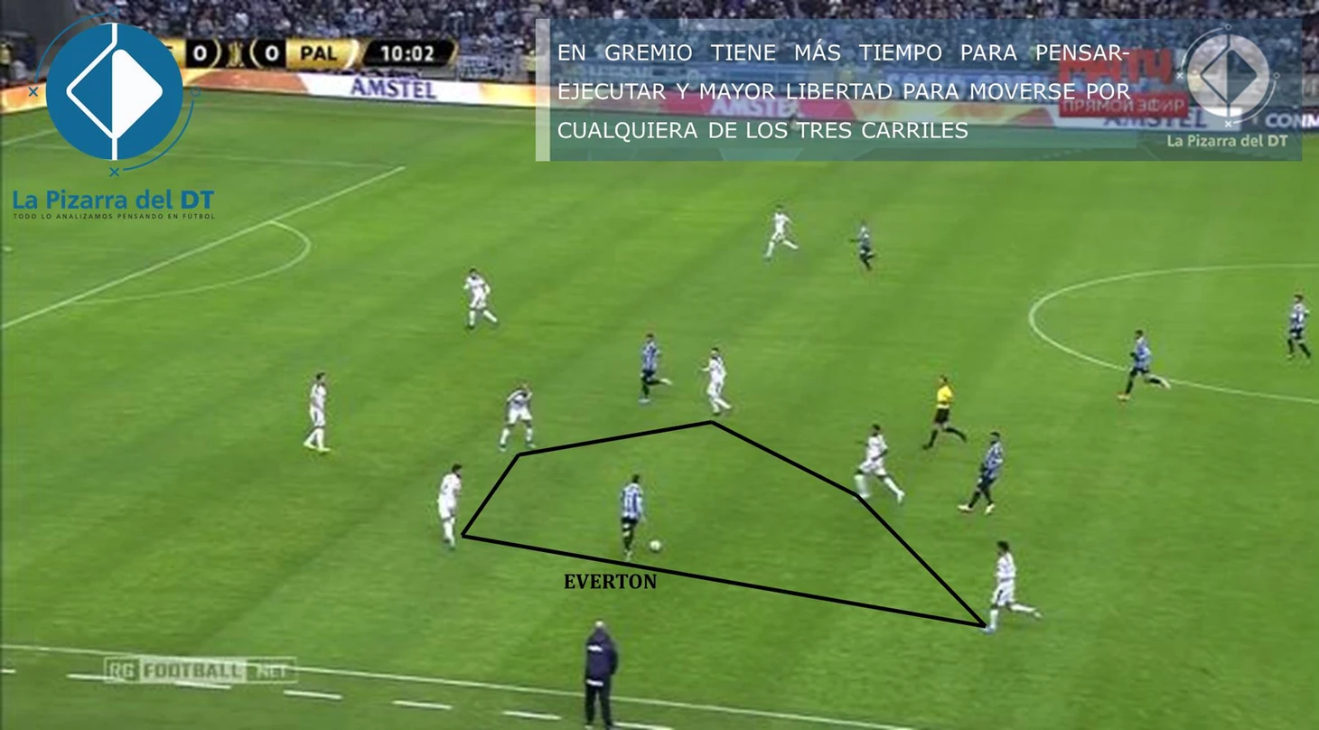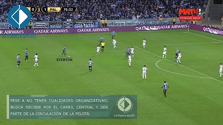 Кстати, главный тренер «Гремио» Ренато Гаушо довольно часто использует Эвертона в качестве центрального нападающего. У Тите же есть свое видение, как правильно размещать его. «У Эвертона есть техника и хорошее чувство партнеров – два качества, необходимые для классного флангового игрока. Эвертон умеет думать, за счет этого он знает, как правильно отдать пас и как открыться в нужный момент», – говорит Тите.