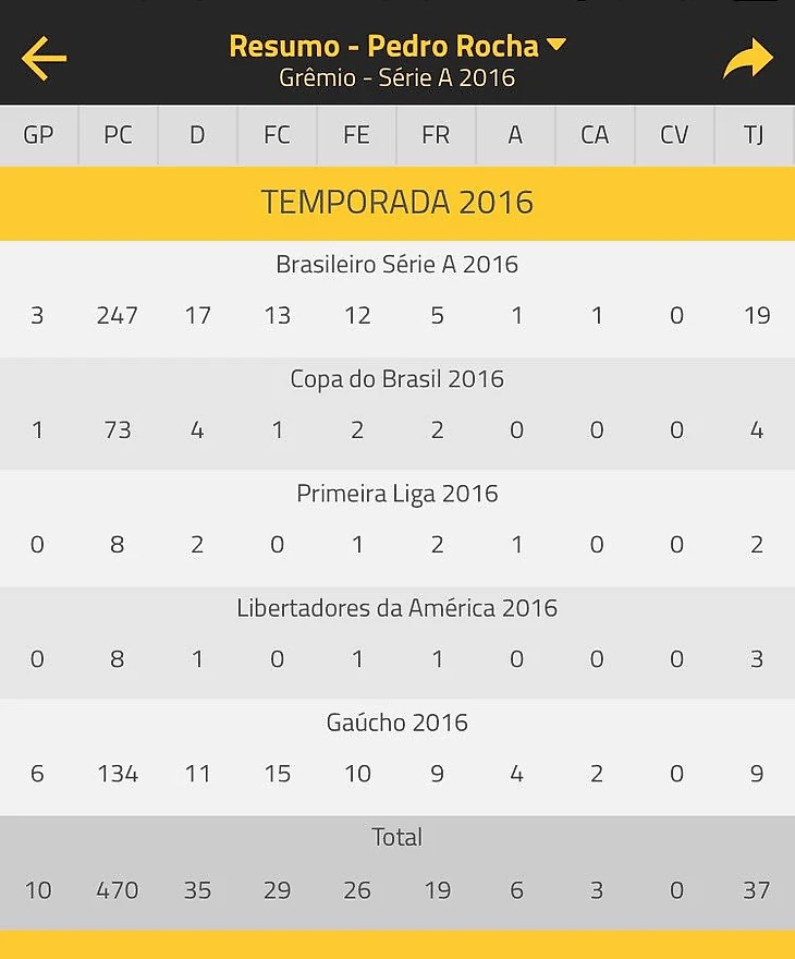Для сравнения статистика Себолиньи и Педро Роши-2016