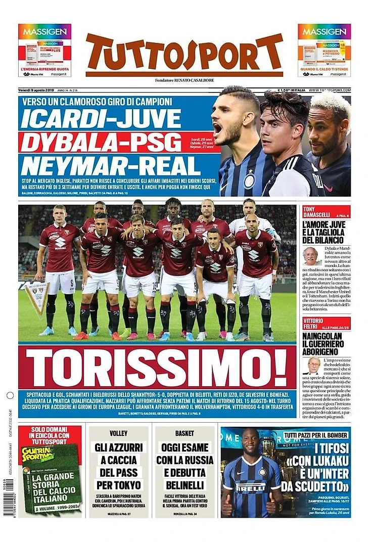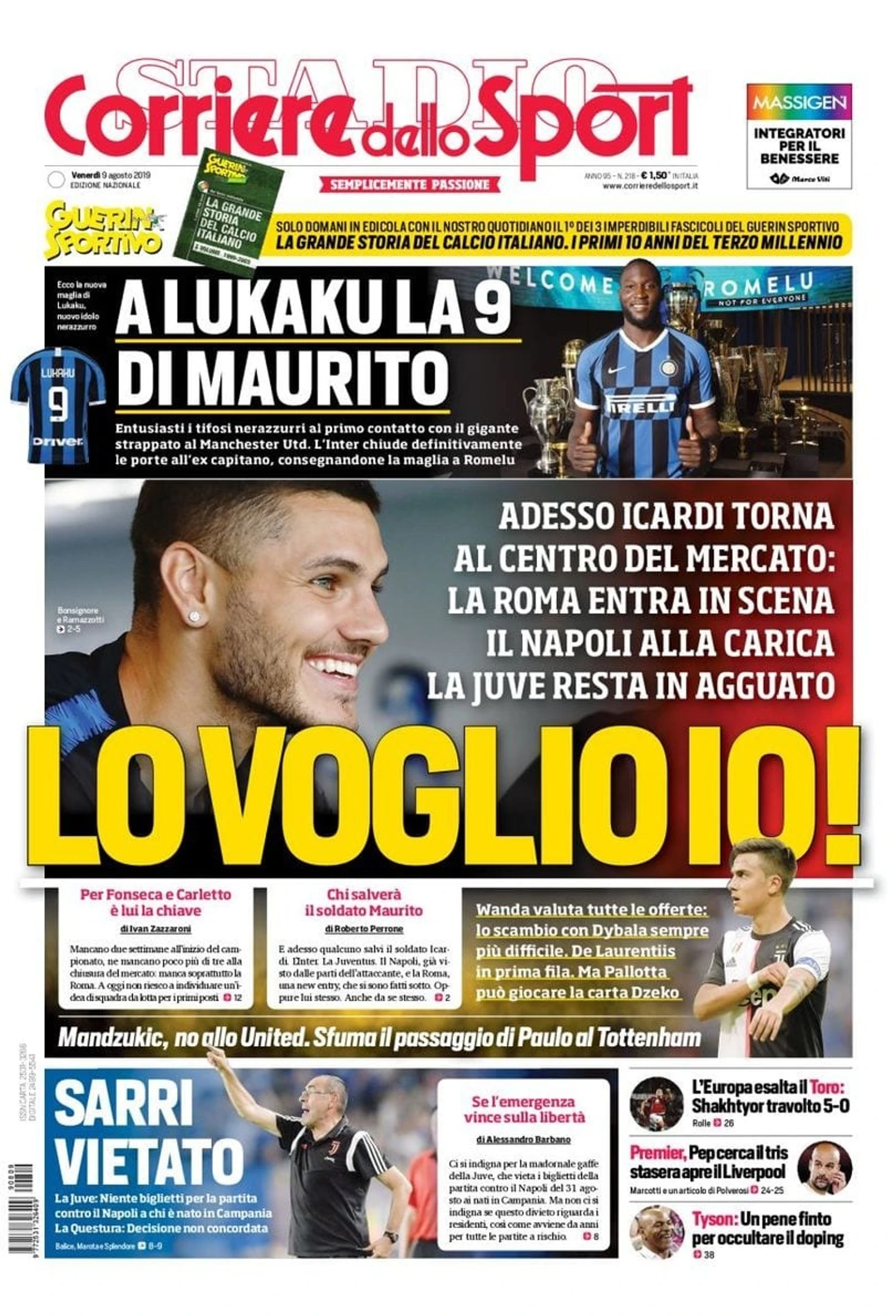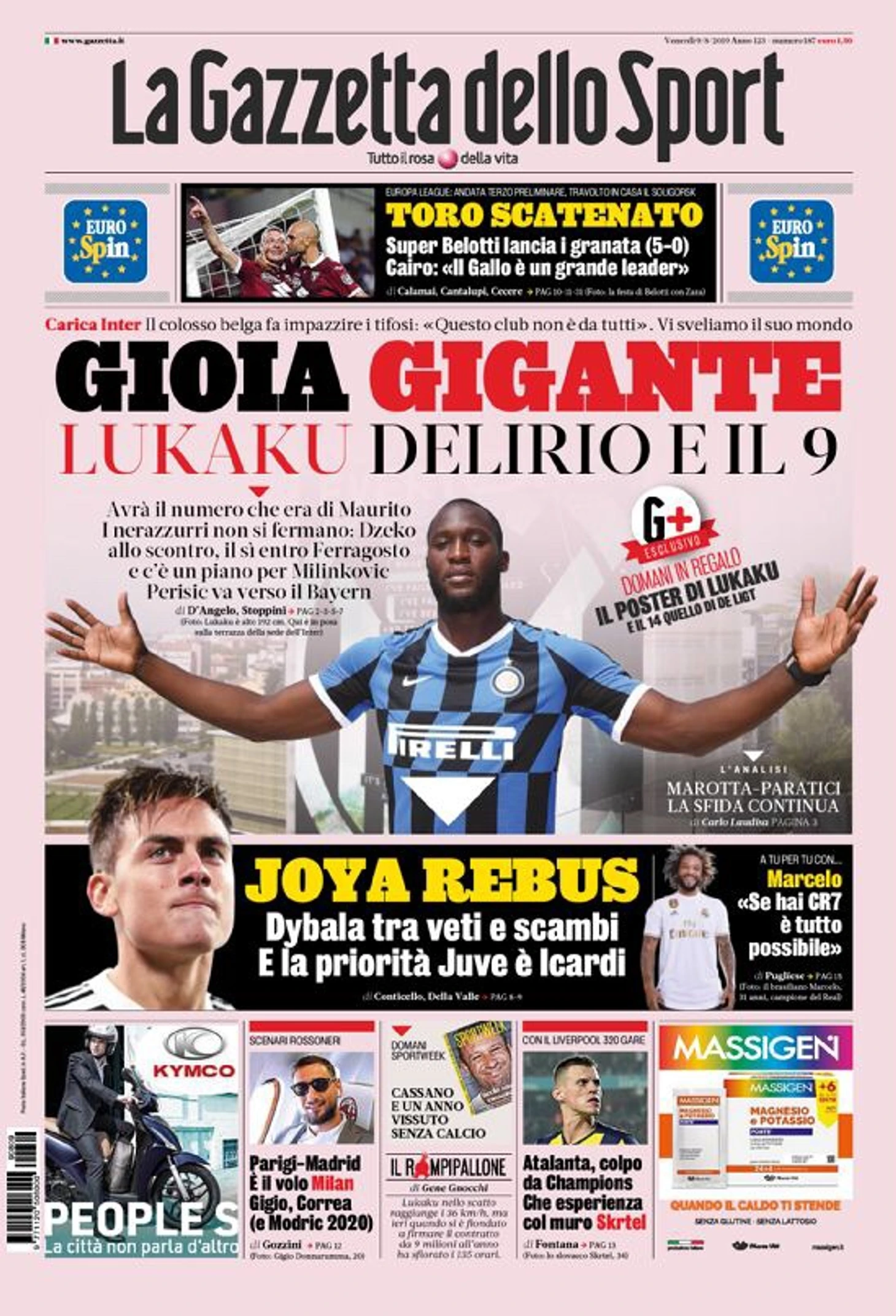 Гигантская радость. Заголовки Gazzetta, TuttoSport и Corriere за 9 августа