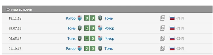 - Команды имеют одинаковую статистику по разнице забитых/пропущенных голов (+7), но при этом сибиряки пропускает меньше («Томь» - 9:2, «Ротор» - 11:4 ).