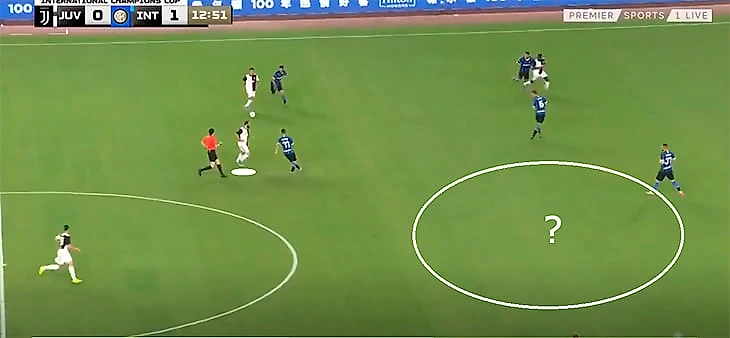 • подстроится под смещения Роналду в центр и уйдет на фланг.