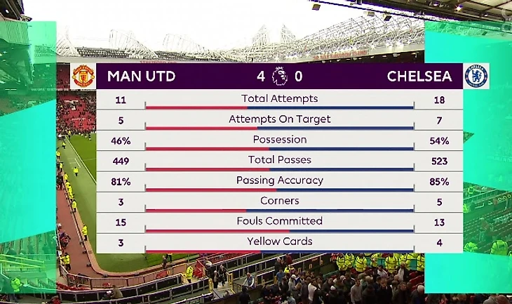 Во-первых, сыграл ли состав в целом и конкретные его игроки на итоговый результат матча? На мой взгляд, и да, и нет. Да, это был далеко не тот состав, что был в прошлом сезоне, и скорее всего не тот оптимальный подбор игроков, что мы увидим в течении сезона. В заявке на игру не было Рюдигера, Лофтус-Чика, Виллиана, Батшуайи и Хадсона-Одои, а Канте вышел лишь на замену во втором тайме - всё это непременно ослабило "Челси" и дало преимущество для "Манчестера". НО! Даже при этом нельзя сказать, что тот состав, что мы увидели сегодня - был совсем плох. Нет, вовсе нет. И «старички» команды в лице Баркли, Педро, Эмерсона и остальных, и «новички» в лице Маунта, Абрахама, Зума смотрелись неплохо. О чем, собственно, и свидетельствует статистика матча. Напрашивается вывод, что дело не в самих игроках, дело в их взаимодействии на поле, а об этом мы поговорим в следующих пунктах.