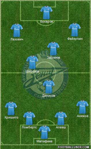 «Зенит» (версия ProZenit Open Blog): Малафеев – Анюков, Алвеш, Ломбертс, Кришито – Денисов, Зырянов, Широков – Файзулин, Лазович – Бухаров