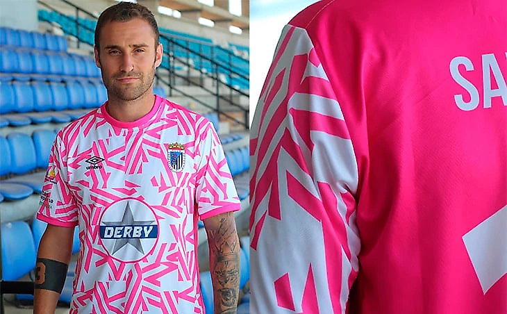 Красивых розовых форм в этом году как никогда много, причем не только в высших лигах. Одна из лучших – у «Бадахоcа» из испанской Сегунды Б. Это фирменный узор Umbro: бренд называет его «осколки бриллианта», похожий есть на формах его других клиентов – например, «Бернли» и «Хартс».