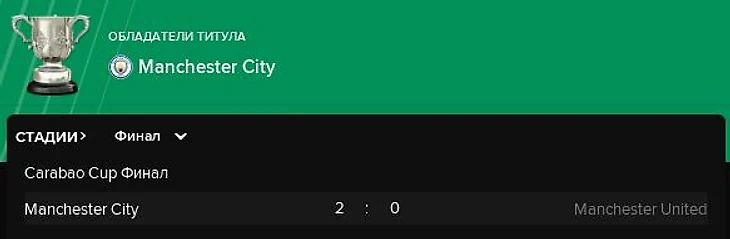 А 3й по значимости английский трофей выиграл Манчестер Сити, одолев в основное время соседей Манчестер Юнайтед.