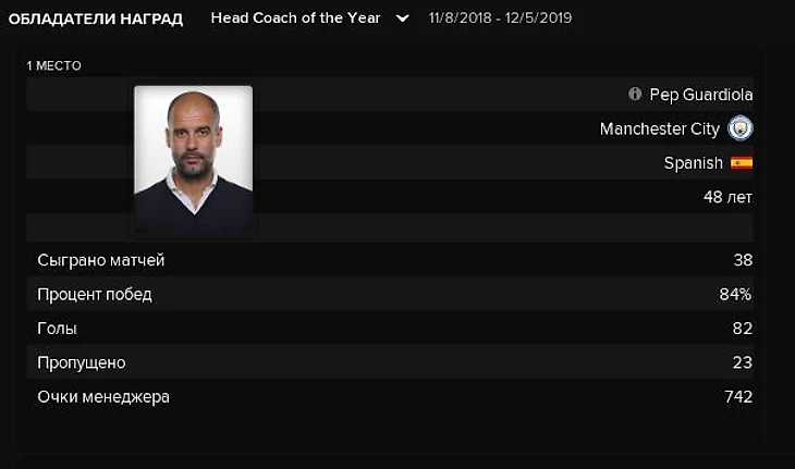 Ну и продолжил гегемонию горожан Пеп Гвардиола, который выиграл звание лучшего тренера года.