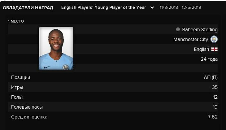 Лучшим молодым игроком сезона стал Рахим Стерлинг, который забил 12 мячей и сделал 10 голевых передач.