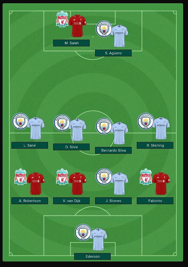 Так же вашему вниманию – символическая сборная по итогам чемпионата. Команда состоит из 2 команд – Сити и Ливерпуль. Очень напоминает сборную прошедшего чемпионата, которую разбавил лишь Поль Погба.