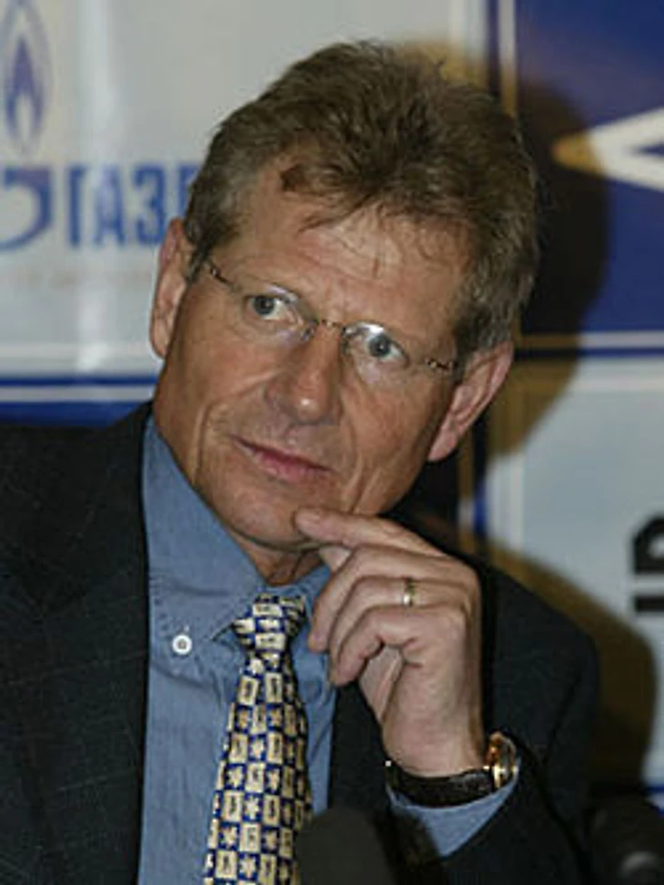 На фото: Властимил Петржела на своей первой пресс-конференции в качестве главного тренера ФК "Зенит", 2003 год.
