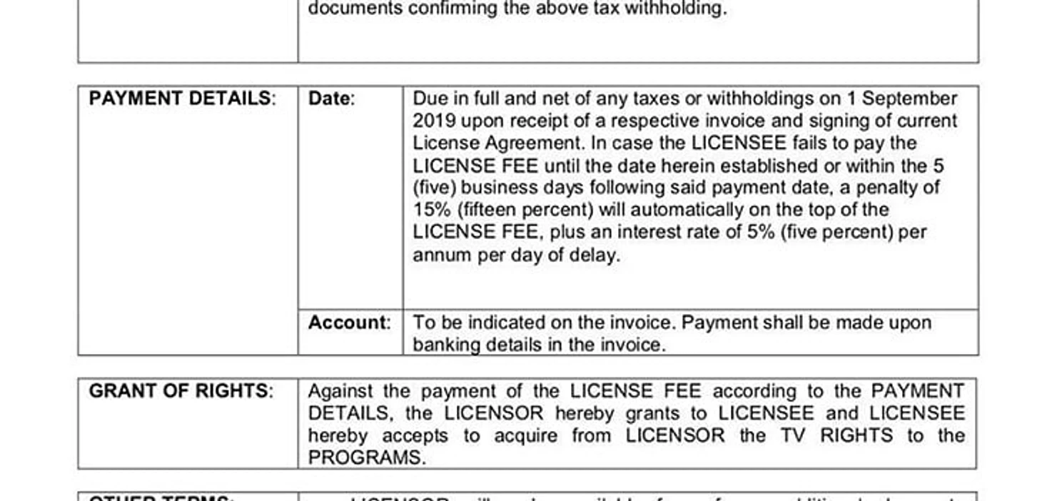 1. В Европе договора не играют той роли, что у нас. Это просто описание намерений. Роль играют инвойсы. Если бы то, что говорит матч-тв, было правдой, у них был бы инвойс с payment due on 1. Sept. Да, инвойсы выставляются сразу, как только договорились, неважно, когда там оплата. Это основной юридический документ. Вместо этого они показывают филькину грамоту, составленную их же юристами.