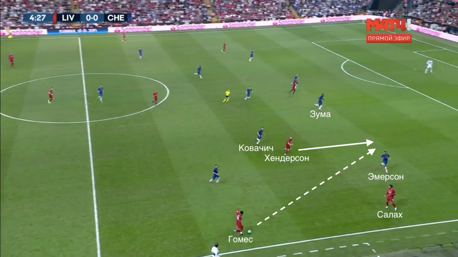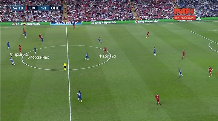 «Ливерпуль» пробовал прессинговать, но часто это было неудачно из-за отсутствия в старте Фирмино. Основным игроком, через которого выходил «Челси» из-под давления был Сесар Аспиликуэта: