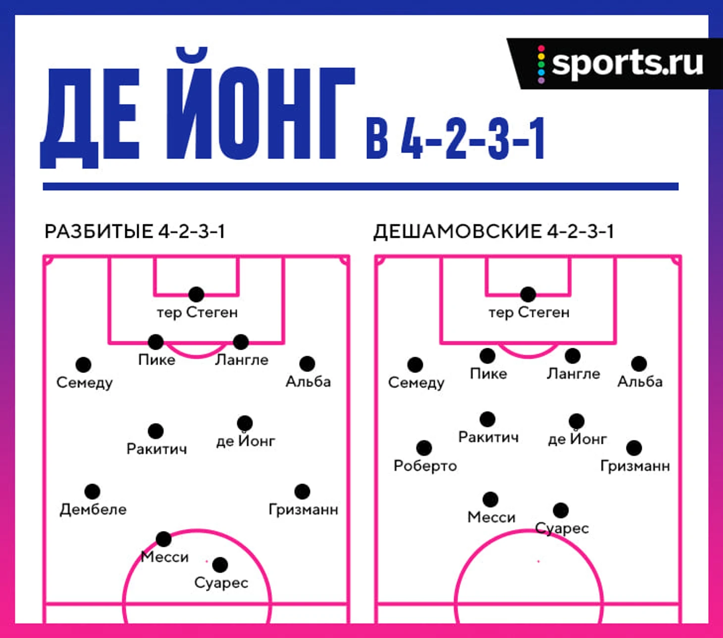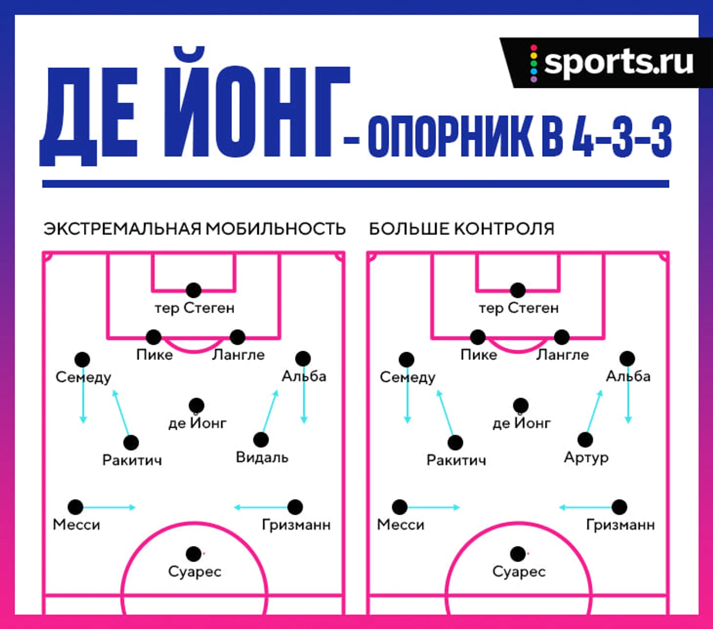 • Восьмерка в 4-3-3: оптимальная роль для де Йонга. Вероятно, именно там и будет играть.