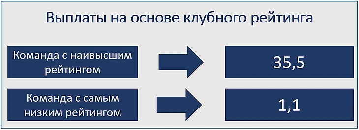 • 30% - выплаты согласно рейтингу выступления команд за десять лет (585 млн)