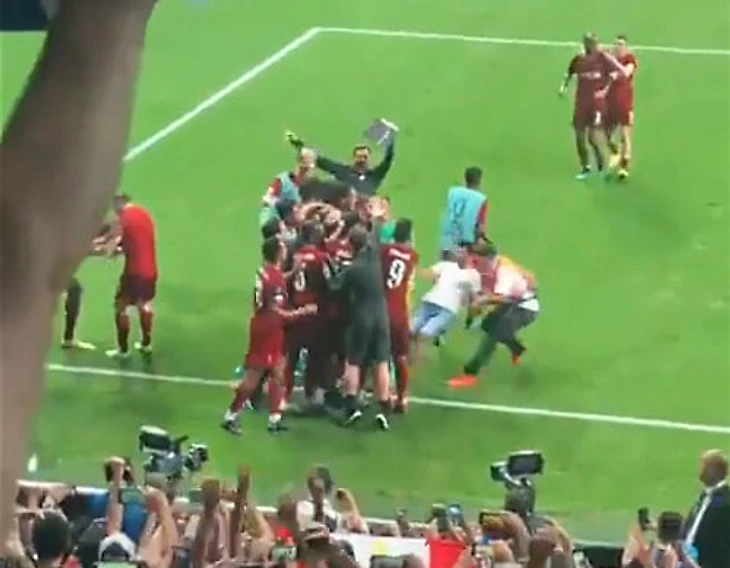 Сразу после сэйва Адриан побежал обниматься с командой – к вратарю рванул почти весь состав и тренеры. Все обняли вратаря, а потом на поле рванул еще и болельщик «Ливерпуля». На подлете к игрокам фанат попытался затормозить, но его схватил за руку стюард – получился подкат двумя ногами вперед в лучших традициях Роя Кина. Болельщик снес половину игроков – среди них был и Адриан.