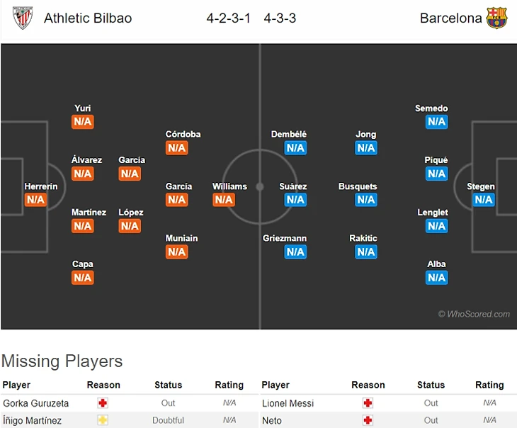 Впрочем и у хозяев есть свои потери: из-за повреждений не смогут принять участия в дебютном туре Иньиго Мартинес(5,5), Кордоба(6,5) и Ибай Гомес(7)