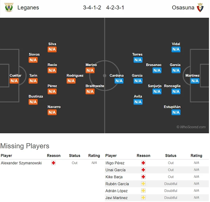 Осасуна сама только-только вернулась в Примеру и тоже ещё не завершила свое комплектование. Буквально вчера памплонцы усилили свою защитную линию опытным сосьедадцем Раулем Навасом(5,5), который однако не вошел в итоговую заявку команды вместе с Ронкальей(5,5) и Рубеном Гарсией(6,5).