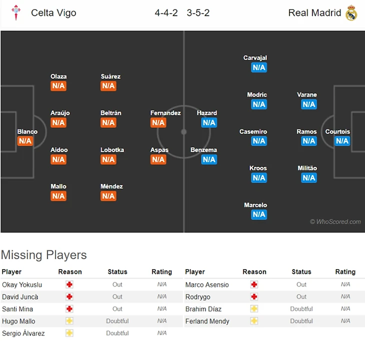 На самом деле обе защитные линии не вызывают сильного доверия, поэтому приценитесь к атакующим юнитам. У хозяев это прежде всего Аспас(8) с Суаресом(7) а у гостей Бензема(9,5) с вероятно Винисиусом(7,5).