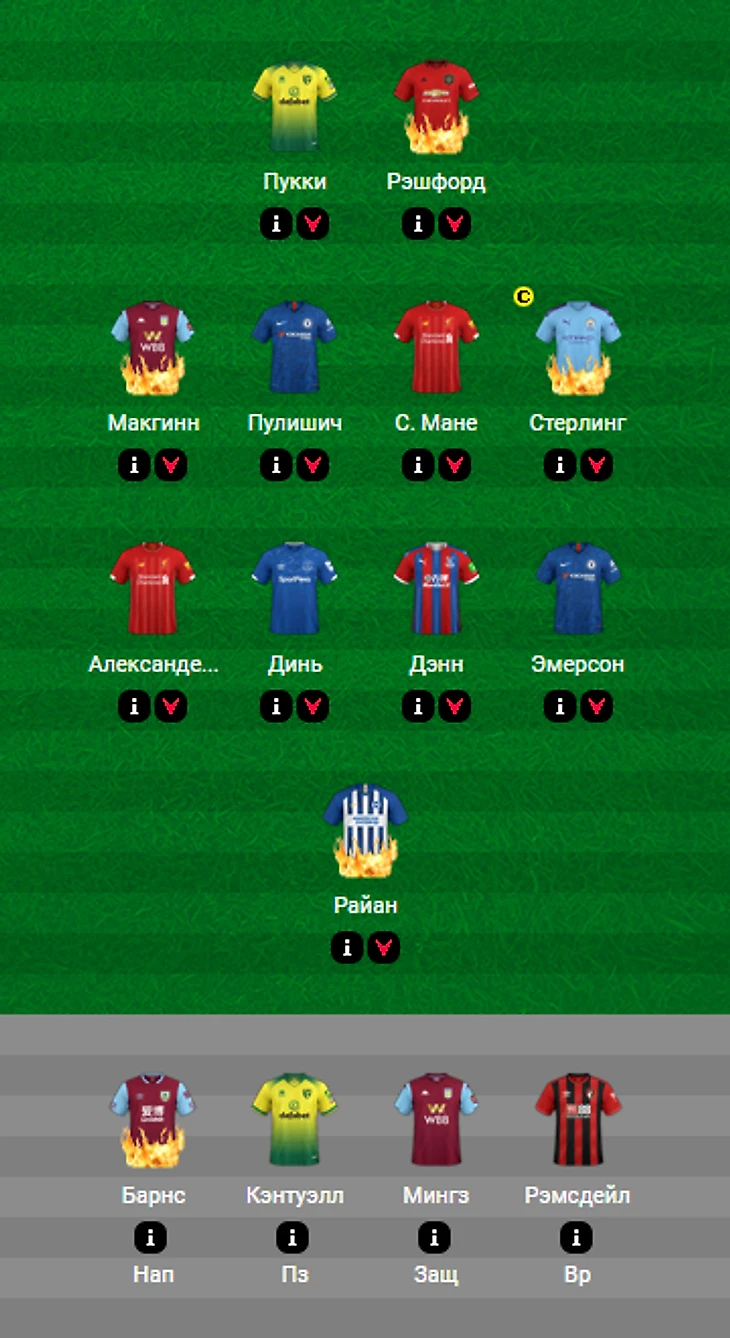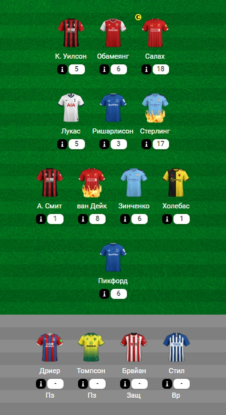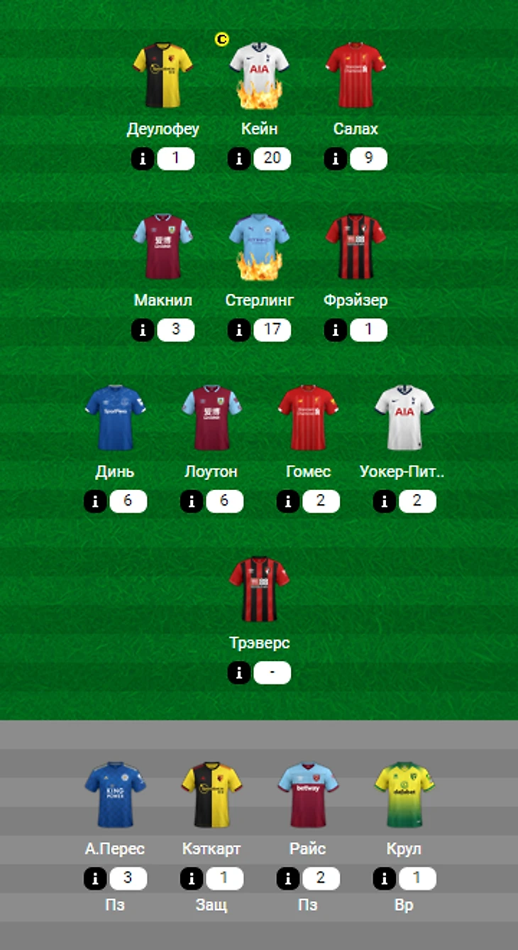 Нападение. Про Салаха 9,5 ничего писать не хочу, он как был на одной полке со Стерлингом, так там и остаётся. Харри Кейн 9,0 продолжает быть беспощадным бомбардиром шпор, но на отрезке Манчестер Сити (Г), Ньюкасл (Д), Арсенал (Г) у него точно есть конкуренты. Приятно удивил дублем Маркос Рэшфорд 8,0, учитывая безальтернативность выбора в нападение дьяволов, англичанин может плотно засесть в вашей команде. Серхио Агуэро 9,5 должен благодарить VAR, что ушёл с поля с забитым голом, потому что на данном отрезке аргентинец даже пенальти бьёт плохо. Пьер-Эмерик Обамеянг 9,0 сохраняет свой результат против не топовых команд, сложности обычно начинаются с представителями элиты, собственно, 3 и 4 туры.