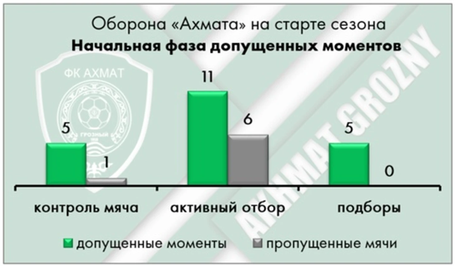 Как следствие, «Ахмат» всего за пять туров полностью выбрал свою прошлогоднюю норму по пропущенным мячам в прессинг-атаках (те же 4 гола, но за весь сезон), а в матче со «Спартаком» еще и дважды пропускал в контратаках (половина от прошлогодней нормы).