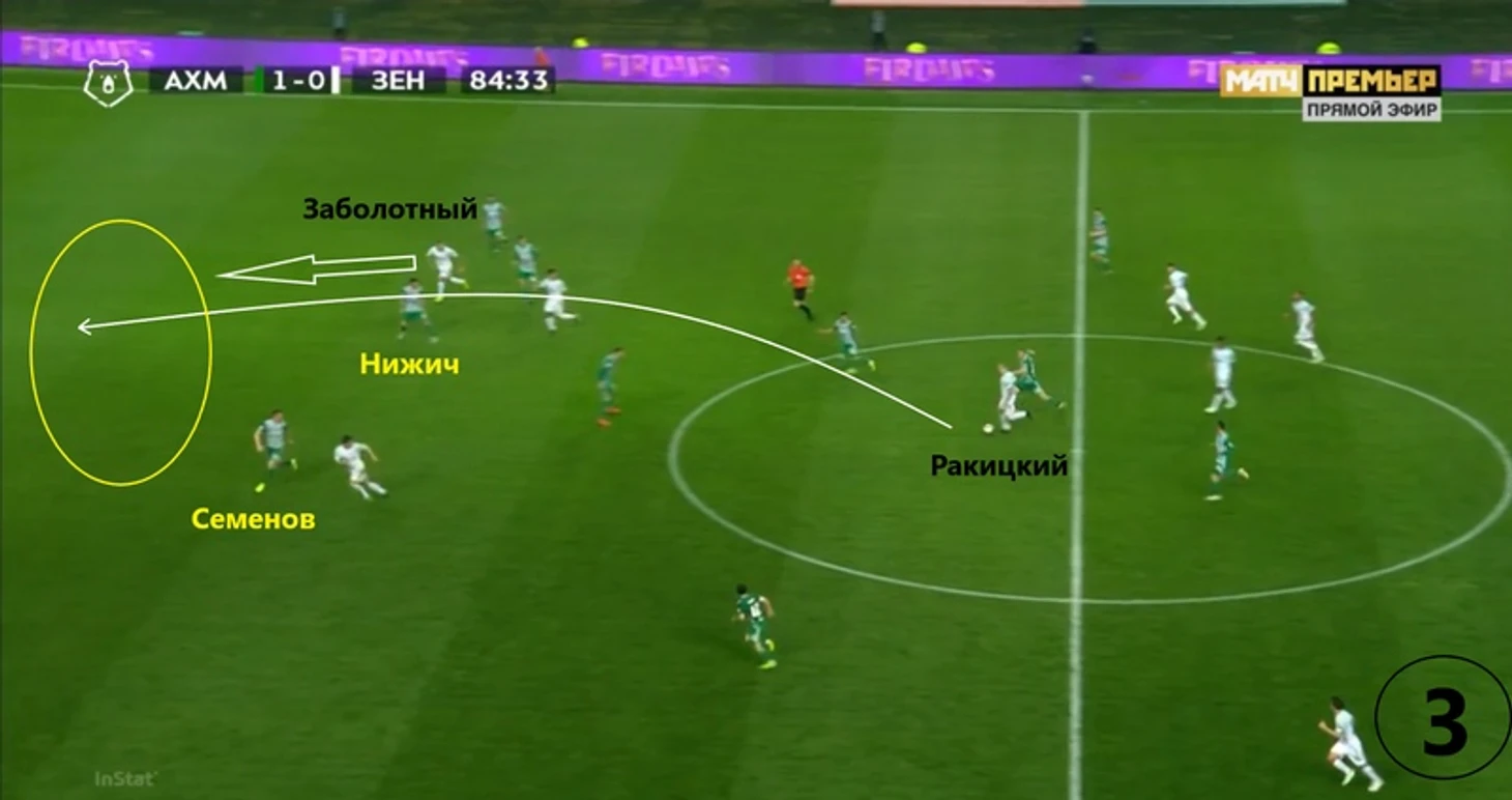 Впрочем, порой это тоже создает проблемы: из трио основных центрдефов Семенов – Нижич – Анхель никто не отличается скоростью, и забросы за спину на свободное пространство нередко приводят к опасностям. Едва ли не самый характерный пример – последний матч «Зенита» в Грозном, когда Ракицкий организовал несколько отличных моментов для партнеров такими закидухами.