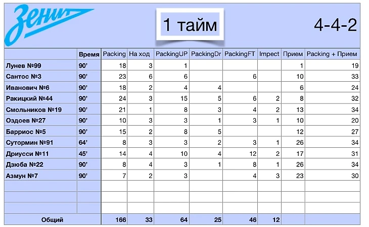 Процент полученных передач каждый раз ярко отражается в packing прием. Сутормин от матча к матчу становится одним из лучших среди отрезавших футболистов соперника на приеме.