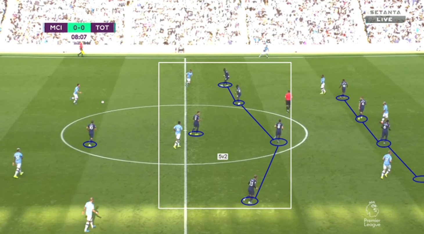 4. Одна из главных причин такого доминирования - прессинг «Сити». Он действительно был практически идеален и не давал «Тоттенхэму» шансов на качественный билд-ап.