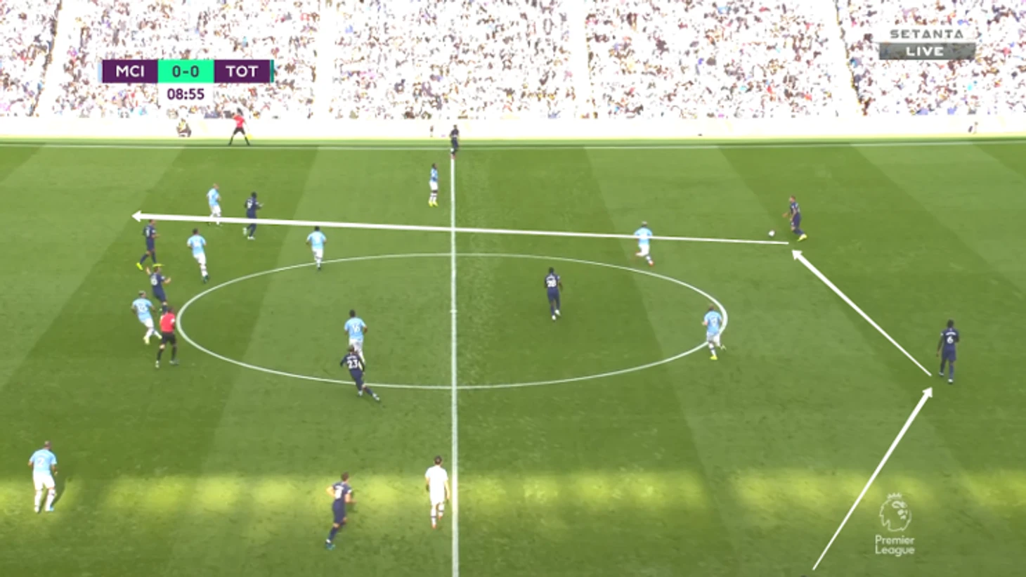 У игроков «Тоттенхэма» очень мало вариантов для короткого розыгрыша мяча. Обычно подопечные Почеттино или выбывали в надежде, что Кейн зацепится, или отдавали назад, прижимались к своим воротам и в результате своим прессингом «Сити» заставлял все равно выбивать мяч.