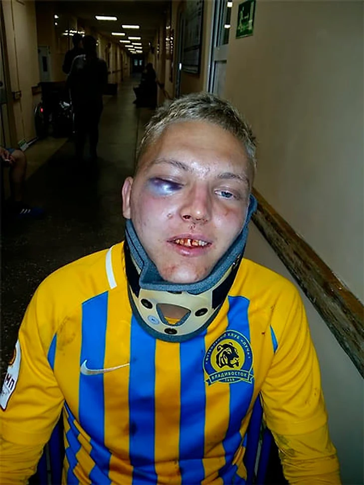 Знакомьтесь, это – Дима Калугин, игрок «Луча». Нет, в него не влетел Понсе и его даже не избили легендарные фанаты команды с Дальнего Востока. Дима столкнулся с вратарём и пока все спокойно продолжали матч, даже не подозревая о тяжёлой травме одноклубника, думая лишь о том, как бы удержать 3:0, ибо замен нет и продолжать вдесятером не хочется, врачи команды думали, где бы найти больницу со всеми нужными специалистами. Но обо всём по порядку.