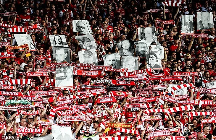 Поэтому неудивительно, что на матче 1-го тура нового сезона на стадионе "Альтен Фёрстерай" не было свободных мест. С одной маленькой поправкой: арена рассчитана на 22.012 мест, но на игру было продано 22.467 билетов. Откуда взялись еще 455 "мертвых душ", спросите вы? Всё дело в акции "Наконец-то здесь!", суть которой заключалась в том, что за стоимость обычного билета в 13 евро любой болельщик "Униона" мог распечатать фотографию своих родных или друзей, которых уже нет в живых и которым уже не суждено было увидеть свой любимый клуб в высшем дивизионе. Клуб посчитал каждый такой 70-сантиметровый плакат за одного полноценного посетителя.
