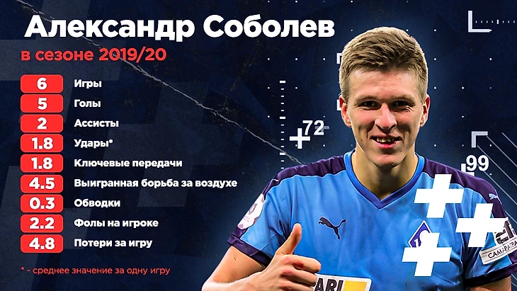 Соболев заставляет соперников нарушать правила (около 3 фолов за игру) и выигрывает около 50% верховых единоборств. Но при этом нападающему нужно прибавлять в контроле мяча, ведь сейчас у страйкера 4,8 неудачных касаний за матч, а это дико много. Александр с отрывом худший по этому показателю, опережая Николу Влашича из ЦСКА (3,7). Но звезда ЦСКА в три раза чаще пускается в дриблинг (3,8 против 0,3 у Соболева), поэтому такая его статистика предельно понятна. Несмотря на то, что форвард “Крыльев” лидирует в списке бомбардиров, ему не хватает агрессии и нацеленности на ворота (лишь 1,8 ударов за 90 минут). Сейчас у Соболева залетает все, но как долго это продлится – большой вопрос.