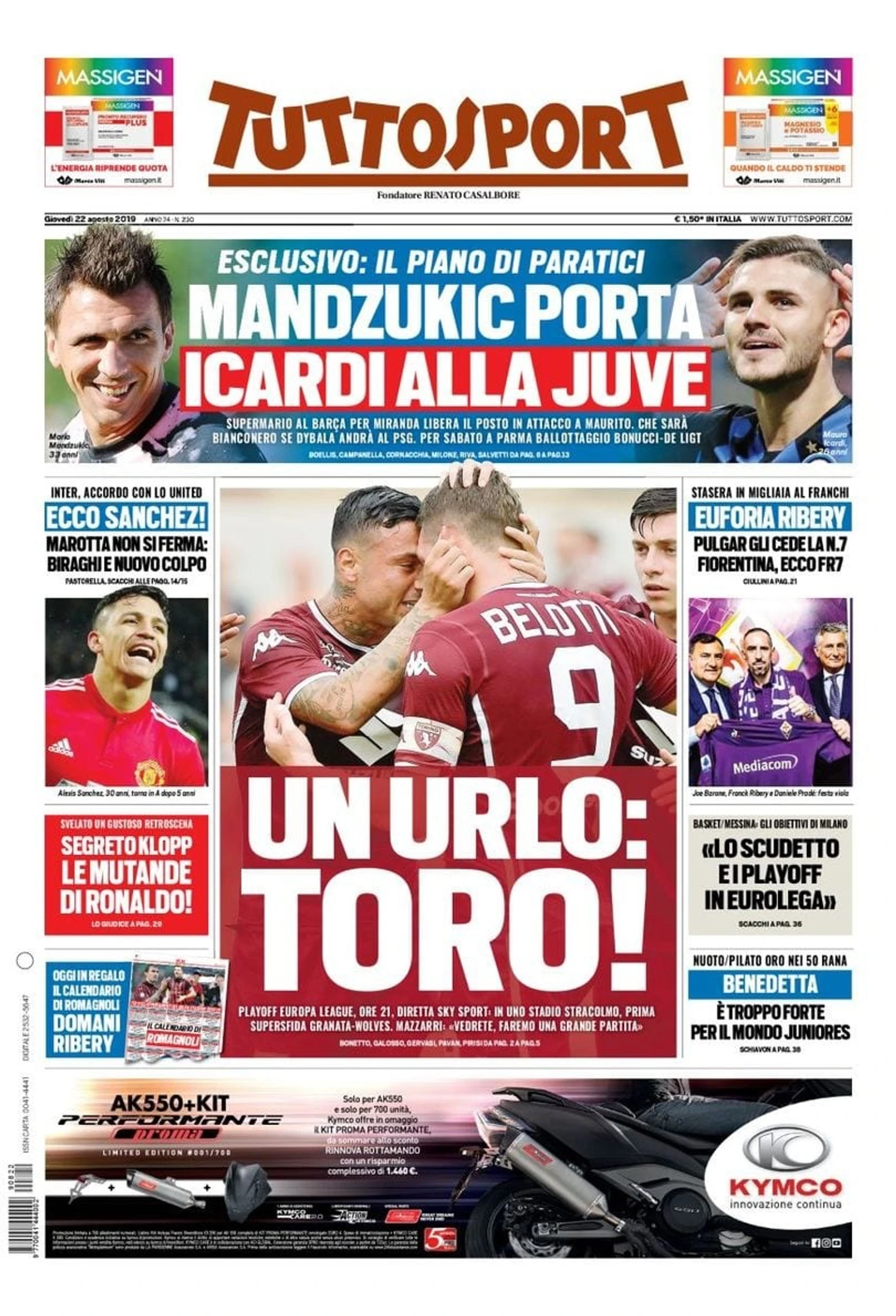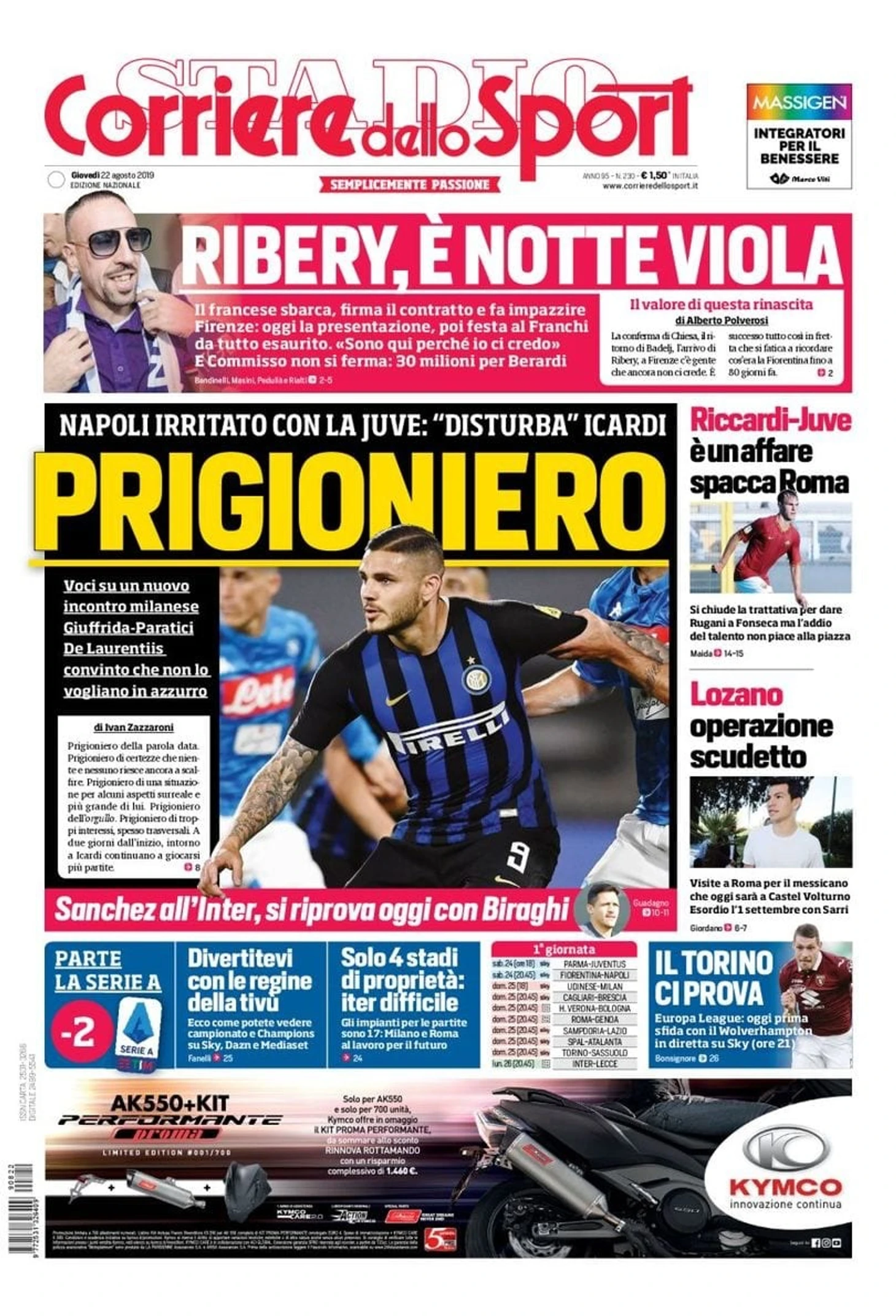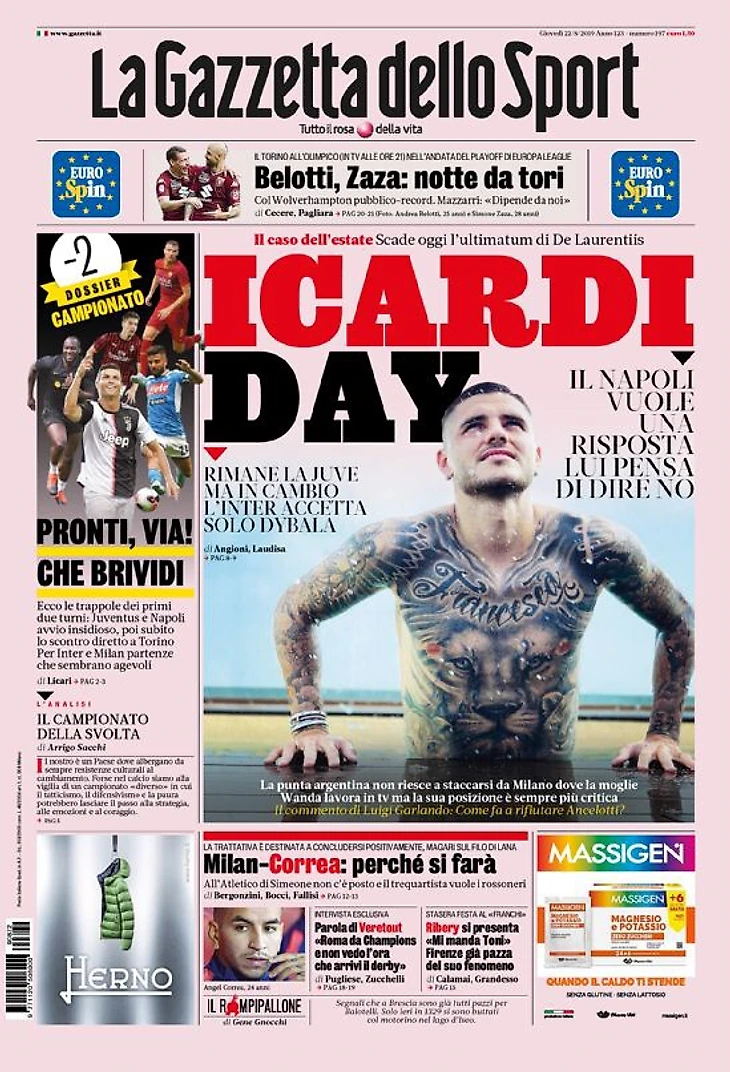 День Икарди. Заголовки Gazzetta, TuttoSport и Corriere за 22 августа